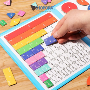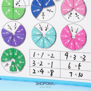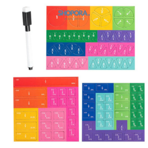 - Kombinera och dela upp bråk med de magnetiska pusselbitarna.