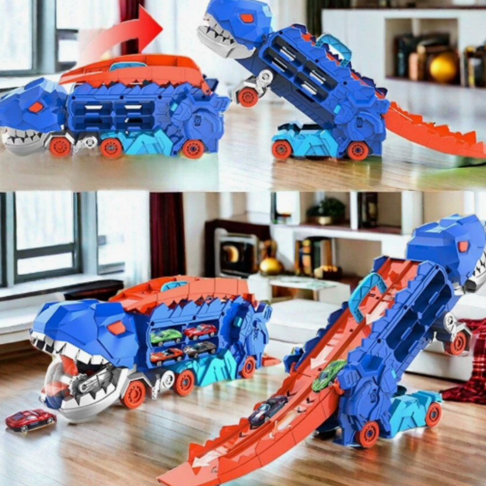 DinoRacer™ kombinerar racing och äventyr i en fantastisk leksak. Barn kan transportera, förvara och tävla med sina bilar på den dubbla banan. Transformationsmekanismen till en stående Tyrannosaurus Rex gör leksaken extra spännande. Den säkra, hållbara designen ger föräldrar sinnesro medan deras barn underhålls i timmar.