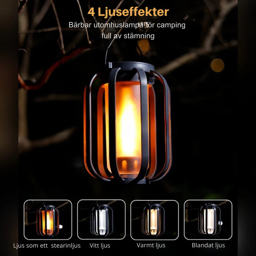 - Ljuseffekter: konstant glöd eller flammigt ljus