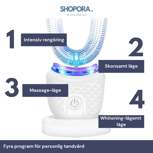 Upplev framtidens tandvård med KlaraTand 360 – en smart, trådlös U-formad sonic-tandborste som kombinerar modern teknik, skonsam vård och maximal effektivitet. Perfekt hemma och på resan.