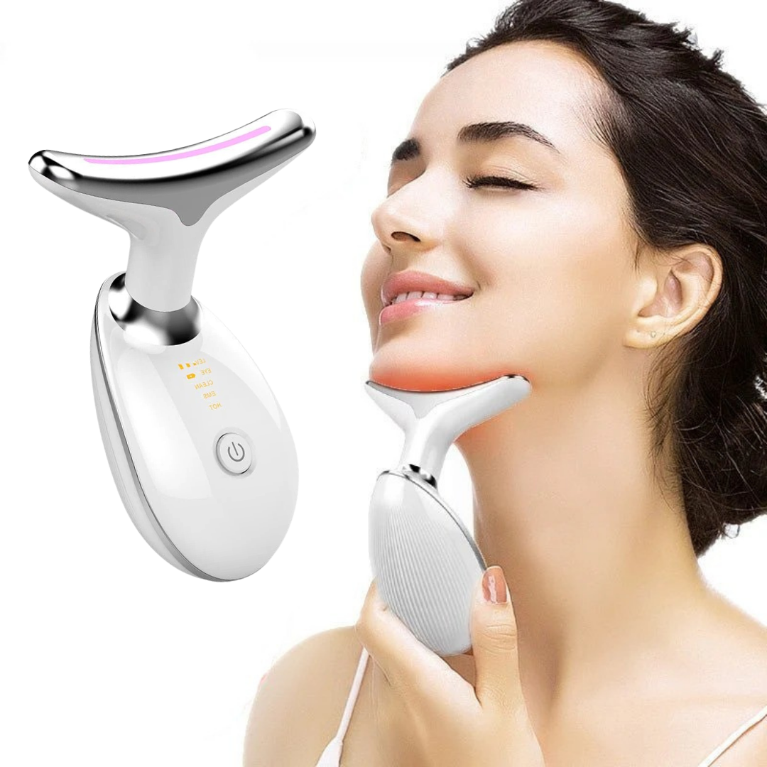 LumaLift™ Face & Neck Massager kombinerar EMS-muskelstimulering, rödljusterapi och värmemassage för att väcka huden till liv.
