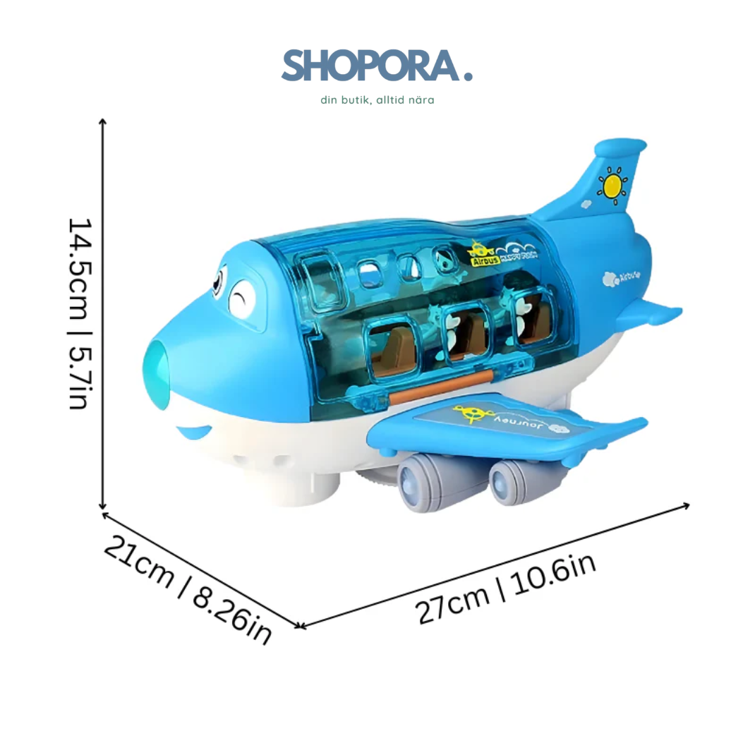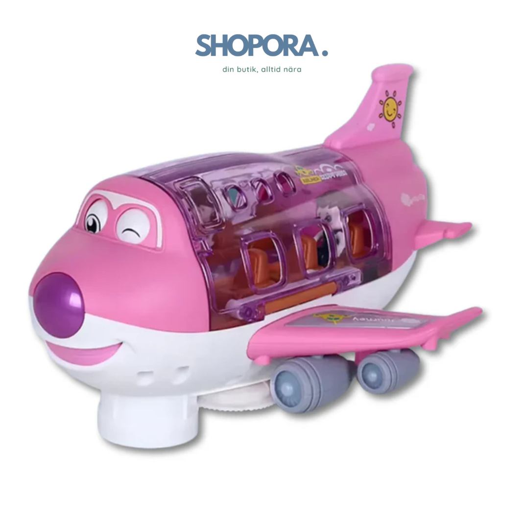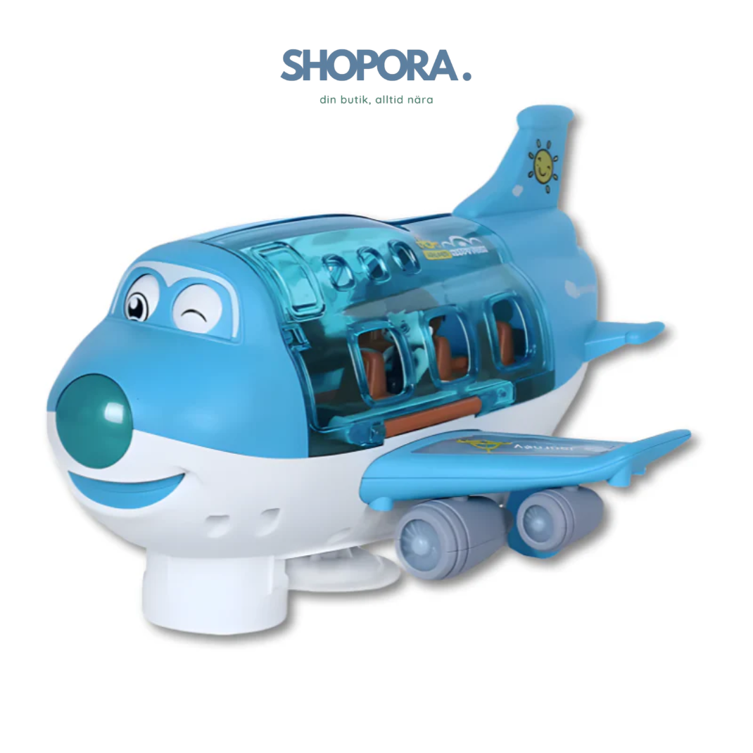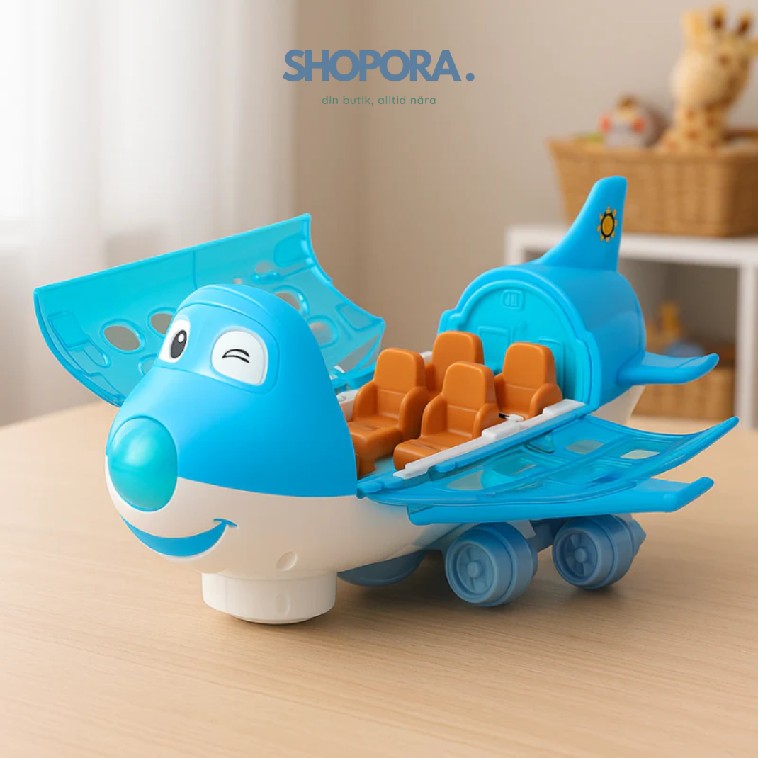 Låt ditt barns ögon lysa av glädje med MagiFlyg™ – det snurrande flygplanet som sprider ljus, musik och magi i varje rörelse.