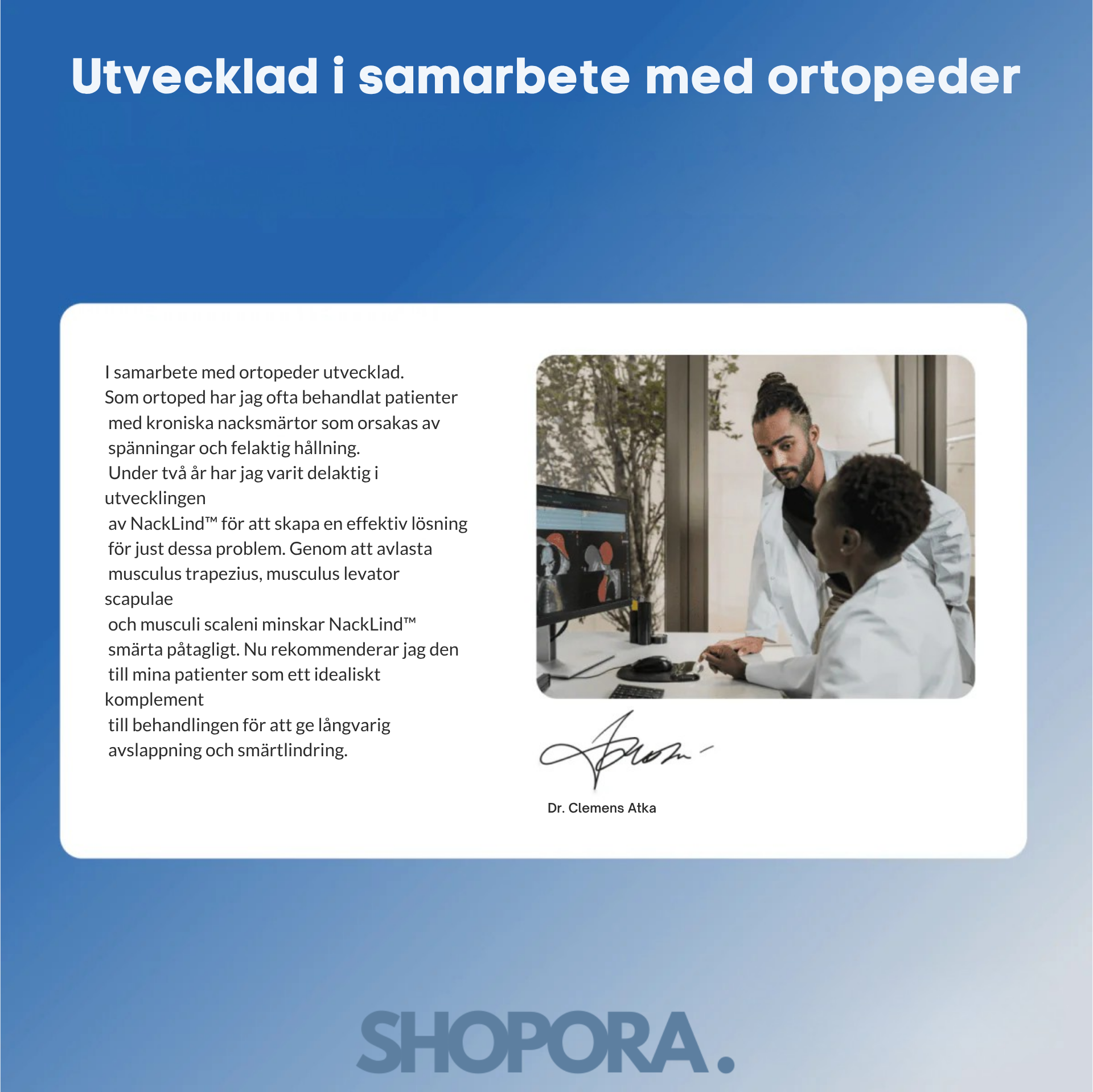 Som ortoped har jag ofta behandlat patienter med kroniska nacksmärtor orsakade av spänningar och felaktig hållning. Under två år har jag deltagit i utvecklingen av NackLind™, för att skapa en effektiv lösning för just dessa problem.