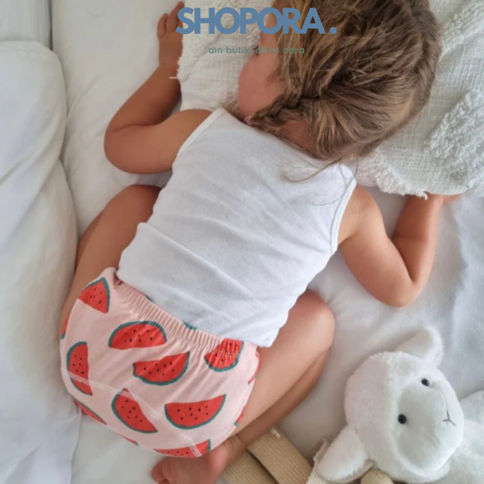 – Ytterlager: TPU-lager som förhindrar små läckage, täckt av bomull med fina barnvänliga mönster.
