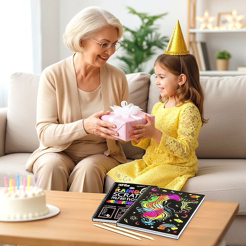 Släpp fantasin fri med RegnbågsKonst™ – det magiska skrapppappret som förvandlar varje liten linje till ett färgsprakande konstverk. Under det svarta lagret gömmer sig en strålande regnbåge som väntar på att bli upptäckt! Perfekt för barn och kreativa själar som älskar att rita, skriva och skapa något unikt.