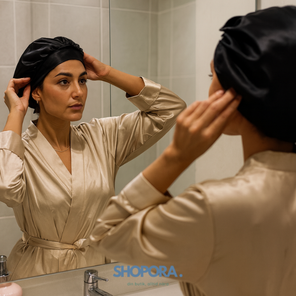 SilkKrona™ är en lyxig nattmössa i 100 % mullbärssilke (22 momme) som håller ditt hår friskt, mjukt och återfuktat.